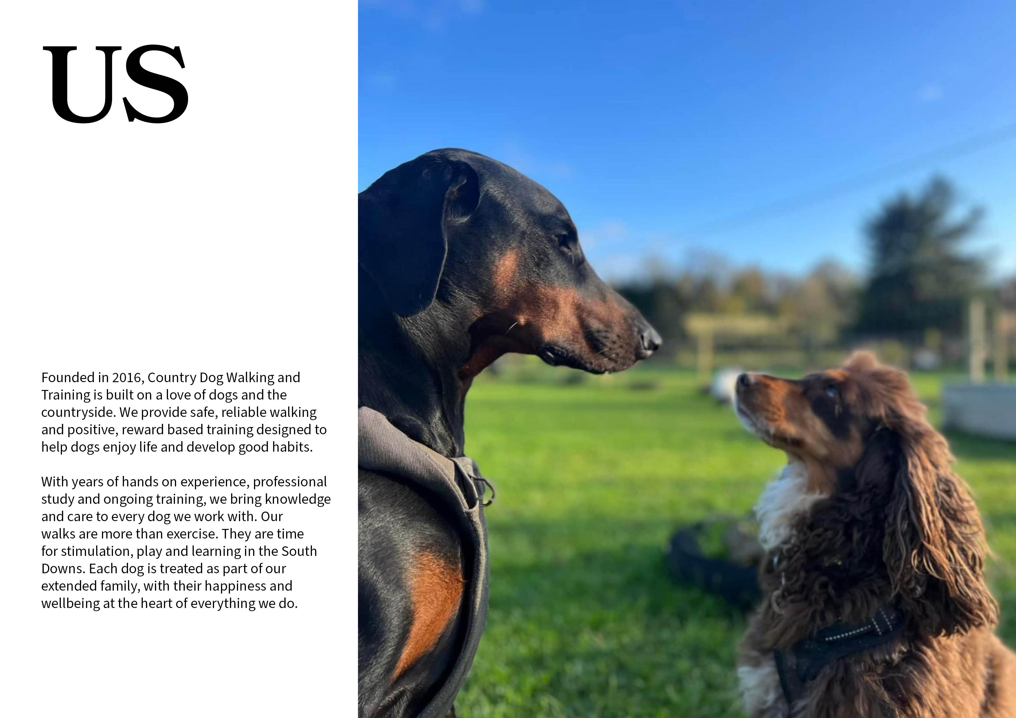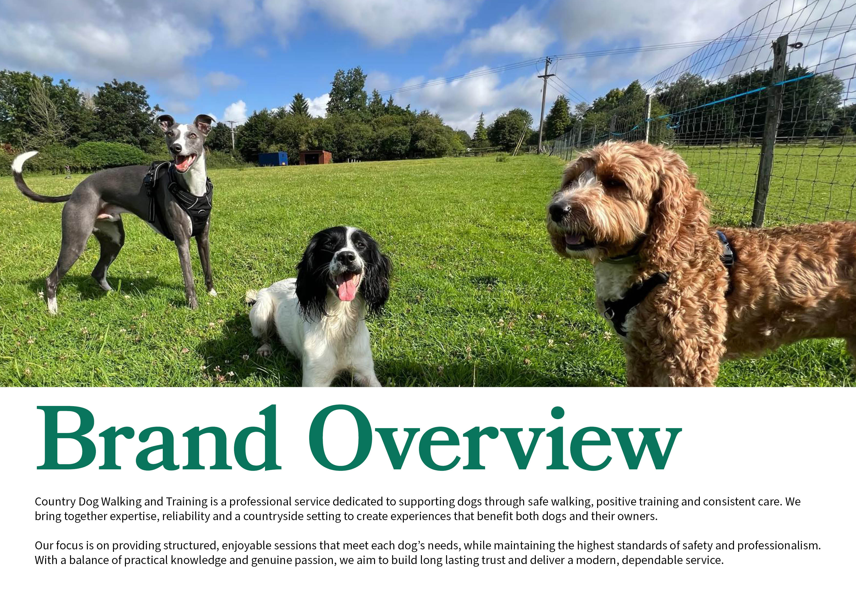 Country Dog Walking is a branding and visual identity project created for a small rural dog walking service. The goal was to design a professional yet approachable look that captured both the friendliness of the service and the natural, outdoor environment it takes place in. The project included logo development, typography, and colour palette, as well as promotional materials tailored to a local audience. By blending clean design with warm, organic elements, the outcome reflects trust, care, and a strong connection to nature.