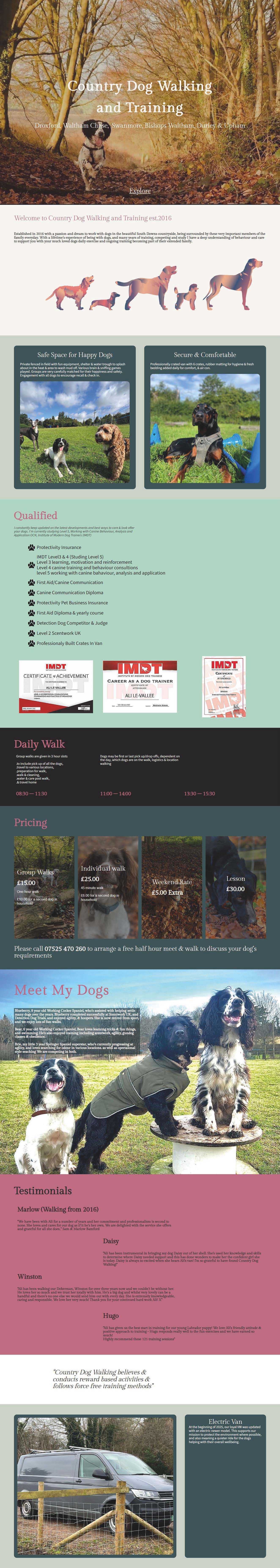This project presents the website design for Country Dog Walking, developed using the brand guidelines I created. The aim was to bring consistency across both print and digital, with the site acting as a natural extension of the visual identity. Colours, typography and imagery were all drawn directly from the brand book, ensuring the design feels cohesive and professional while still warm and approachable.As you scroll you can view the full website design, from the homepage through to service details and testimonials. The layout was designed to be clear and easy to navigate, balancing trustworthiness with personality, while reflecting the outdoor and community focus of the service.